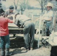 | Frank , Alton and Dave at the calf table Circa 1980 |