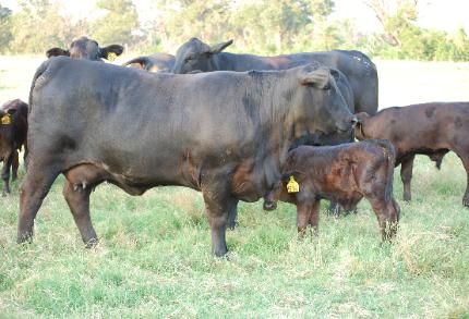 believe the Brangus cow is the best suited cow for our environment. With that said, selection pressures still have to be in place to insure that we don't go backwards with our genetics. We do our best to run our registered cows as we and our customers run commercial cows. We don't believe in creep feeders because our commercial customers don't use them. It also allows us to evaluate the true calf raising ability of our cows. By design, we continually reduce the amount of winter feed and hay that we provide our cows. This allows us to identify and cull the cows with the largest intake requirements and the lowest fertility (these are often related). Open cows go to town. Bad uddered cows go to town. Bad footed cows go to town. Bad tempered cows go to town... you get the idea. |